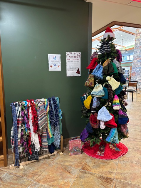 Here is a photo of the Friends Holiday Hat Tree 2025. The hats and scarves are now on their way to eastern Kentucky to help keep children warm this winter. A big thank you to Members Barb L. and Cindy S. for coordinating this project.